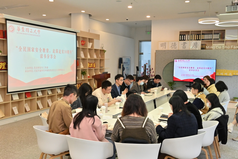 为深入贯彻落实习近平总书记关于加强国家安全教育的重要指示批示精神,深入贯彻落实总体国家安全观,增强师生的国家安全意识,在第十个全民国家安全教育日即将来临之际,由党委研究生工作部指导,习近平新时代中国特色社会主义思想研究会(以下简称“习研会”)联合马克思主义学院团委举办的主题读书分享会于4月3日下午在徐汇校区图书馆明德书房举行。