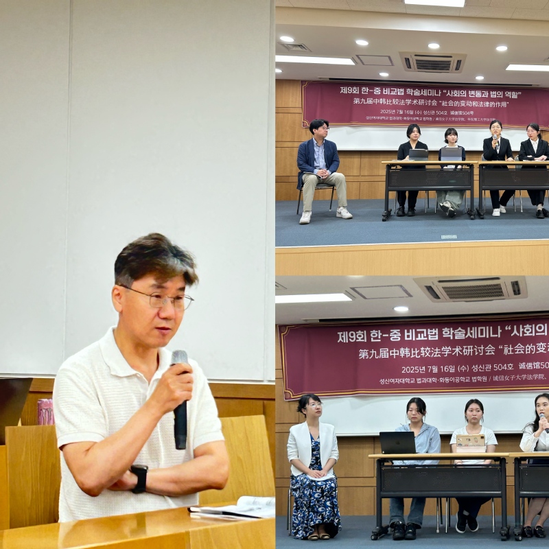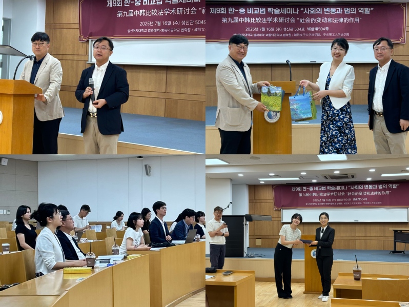 7月16日上午,以“社会的变动和法律的作用”为主题的第九届中韩比较法学术研讨会在韩国诚信女子大学诚信馆拉开帷幕。此次研讨会由华东理工大学法学院与韩国诚信女子大学法学院联合主办,聚焦数字时代法治领域的前沿挑战。开幕式上,诚信女子大学法学院院长黄泰熙教授致欢迎辞,我校法学院任虎副教授致答谢辞。双方均强调中韩法律交流对青年人才成长的重要意义,为这场跨文化学术对话奠定了坚实基础。随后,双方代表互赠礼物,祝愿两校友谊长青。